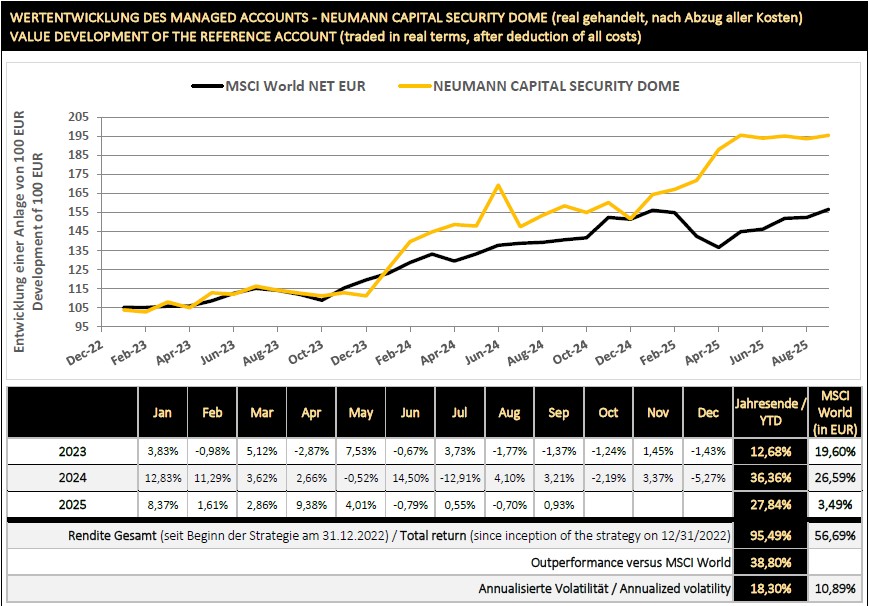 Unsere entwickelte und real gehandelte Portfoliostrategie (kein Backtest) hat mehrere Alleinstellungsmerkmale: